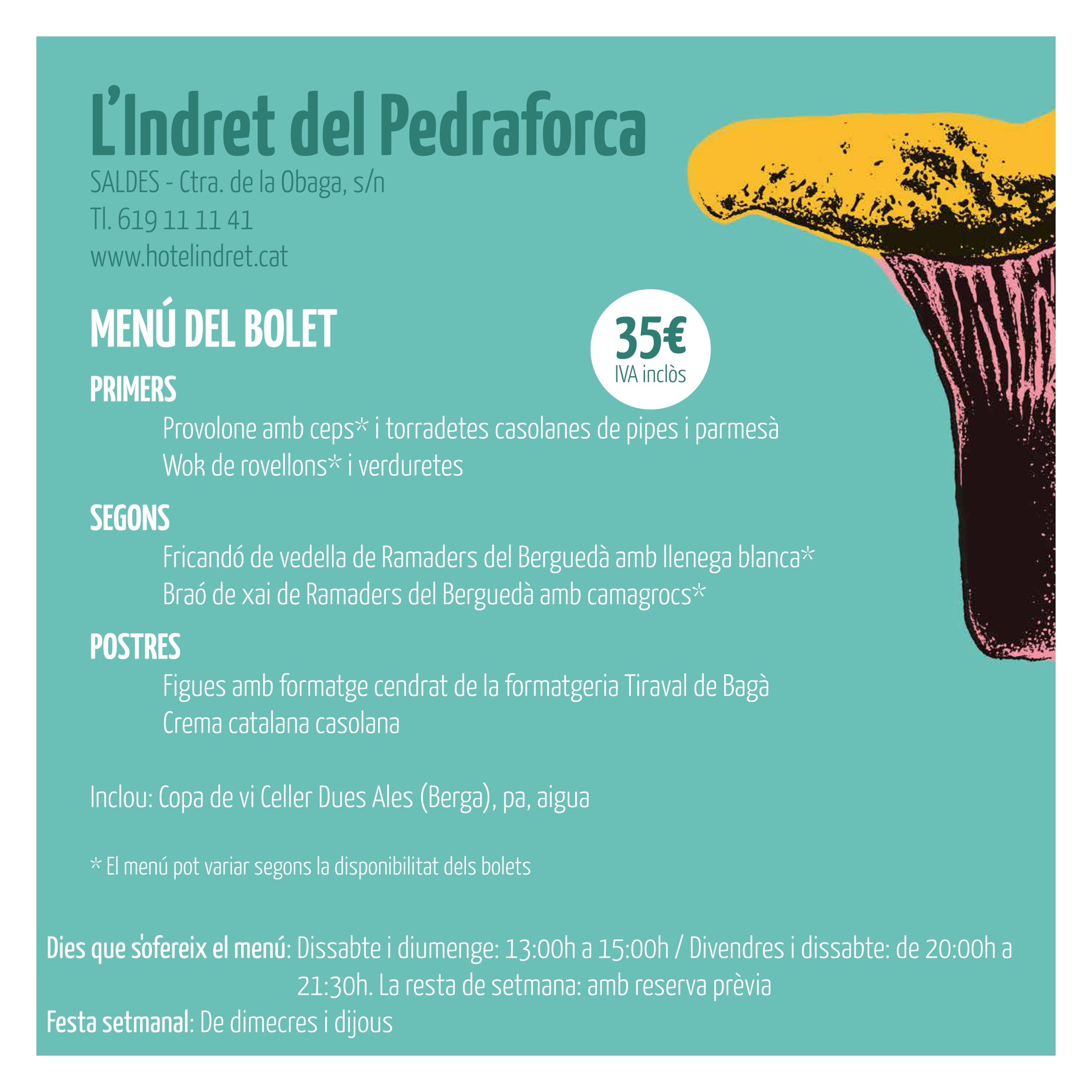 Del 20 de setembre al 23 de noviembre també servirem el menú del bolet.